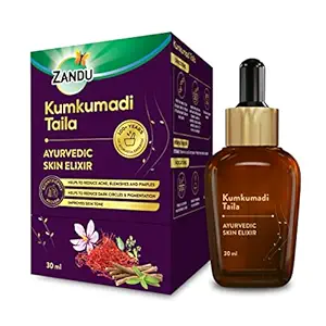 Zandu Kumkumadi Taila is a luxurious Ayurvedic face oil crafted with a blend of 20+ potent herbs and natural oils, including saffron (Kumkum), Yastimadhu, Manjishtha, and Sandalwood. This traditional formulation is designed to rejuvenate the skin, enhance complexion, and promote a healthy, radiant glow.