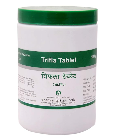 Useful in Laxative & DigestiveProduct Dhanvantari Trifla Tablet-500 Gm is an effective herbal medicine useful in ayurvedic treatment - For dosage / Usage kindly refer the package information.