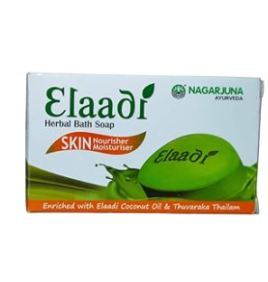 Nagarjuna Elaadi Soap is an Ayurvedic herbal soap formulated to cleanse, refresh, and rejuvenate the skin naturally. Enriched with Elaadi (Cardamom) and other Ayurvedic herbs, it offers cooling, soothing, and antiseptic properties. This soap helps reduce skin irritation, control oiliness, and maintain healthy, glowing skin. Ideal for daily use, it is suitable for all skin types and combines traditional Ayurvedic wisdom with modern skincare needs.